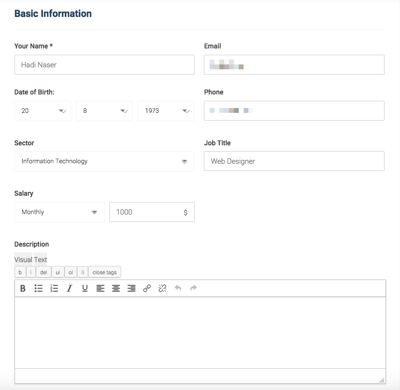 - Email: Fill in your email, it is important to use a valid email so you will receive any notification from jobs.ly through this email, also companies will contact you using this email.