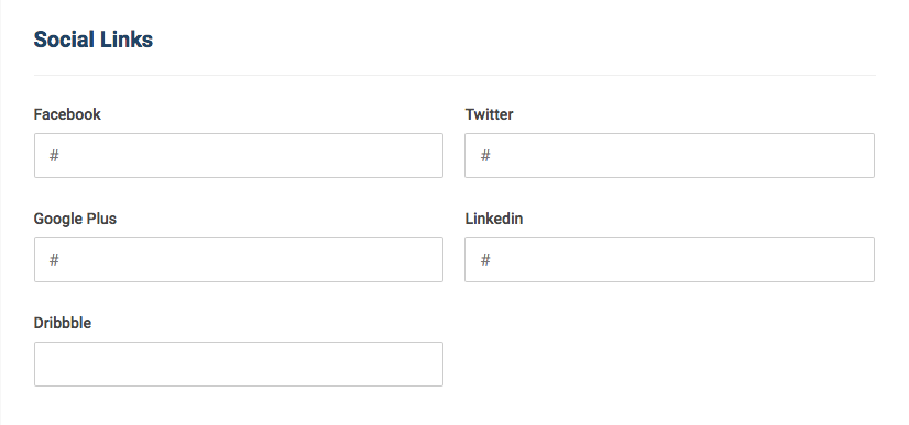 Social media: add your social media account, by copy paste the URL of your account and each label.